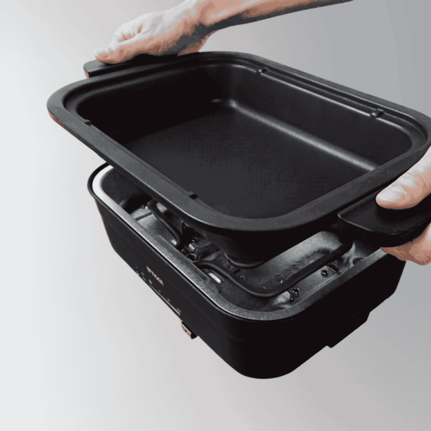Revolutionise how you cook with the skillet’s easily removable plates. Cook one dish and swiftly switch to another by simply replacing the hot plate using the convenient handles. This feature is perfect for back-to-back cooking, making it ideal for house parties or multi-course meals.